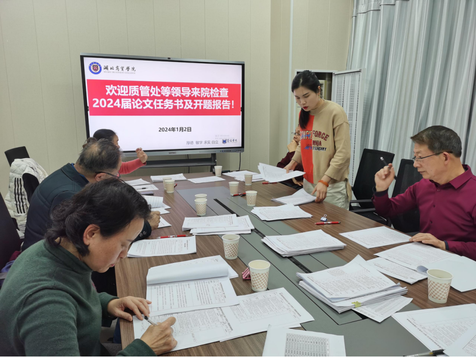 2024年1月2日下午,在教务处的组织安排下,教学质量管理处处长姚晓菊带队,督导专员彭宜佳、周秀荣等莅临申博SUNBET开展2024届员工毕业论文任务书和开题报告专项检查。此项检查为提高毕业论文质量,强化员工学术素养,员工顺利完成毕业论文奠定坚实基础。