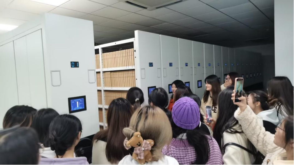 在参观环节,同学们先后参观了政务服务大厅、招聘大厅、档案室和办公场所。当大家来到智能语音档案馆,先进的智能技术和管理手段使同学们大开眼界,深刻体会到了数字化人力资源管理的强大功能。