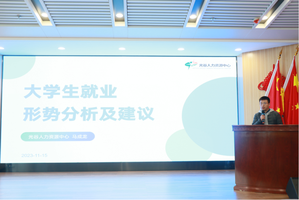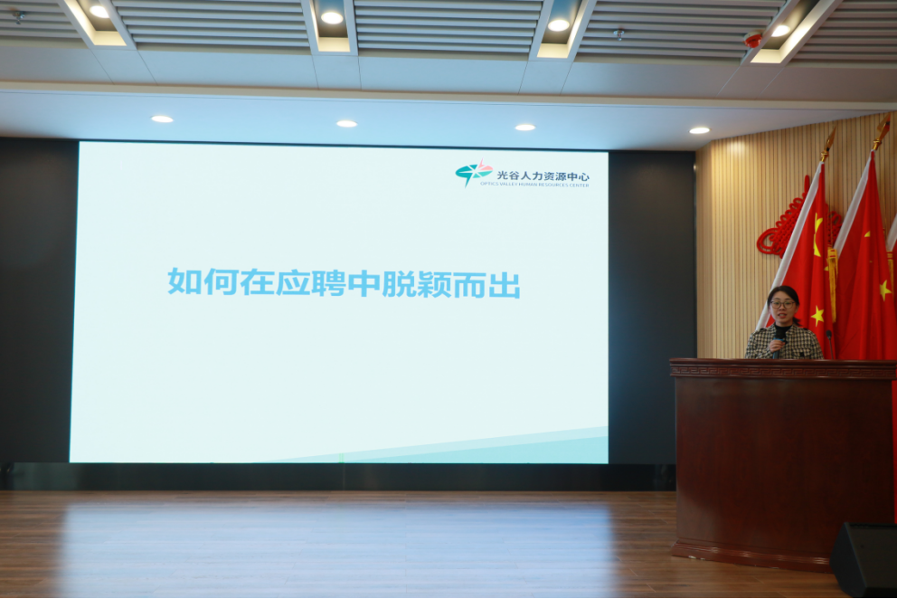 随后,光谷人力资源中心的蔡经理对该公司进行了详细介绍,并热烈欢迎同学们的到来。她表示,光谷人力资源中心致力于为客户提供高效的人力资源服务,希望同学们能够在这里学到实用的知识和技能。