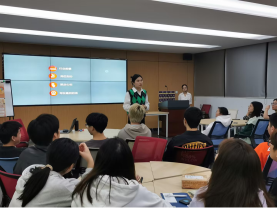 最后,副经理孟静为本次讲座总结,她再次对主讲人陈佩表示感谢。她由衷的希望同学们通过此次讲座能进一步认清就业形势,并建议同学们根据自己的兴趣明方向、立目标、定方法,找策略,在未来职场道路上绽放光彩!