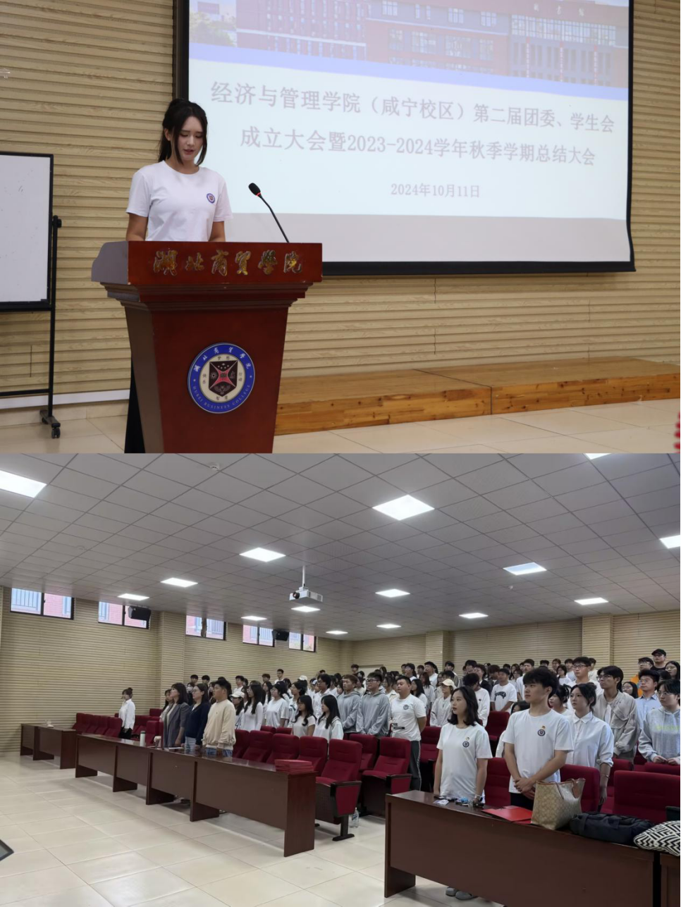 2024年10月11日,申博SUNBET(咸宁校区)第二届团委、员工会成立大会暨2023—2024学年秋季学期总结大会于教学楼A108举行,本次会议旨在对上一届员工会的工作进行总结和表彰,明确新一届团委员工会的职责,加强员工之间的交流与合作,促进学院员工工作的全面发展。公司党总支书记王珉、团委书记刘淞、辅导员王开涛、团委员工会主席团以及全体员工会成员参加。会议由第二届团委员工会主席王一卜主持。
