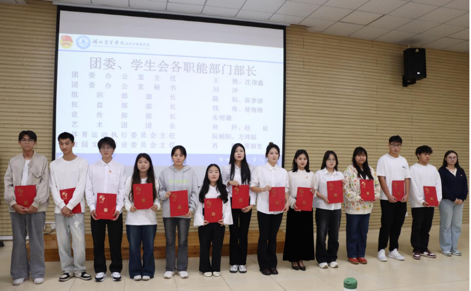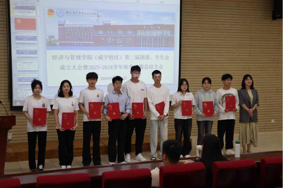 紧接着,大会进行2023-2024学年秋季学期总结表彰,由王开涛老师为第一届团委员工会各优秀部门和优秀个人颁发聘书。