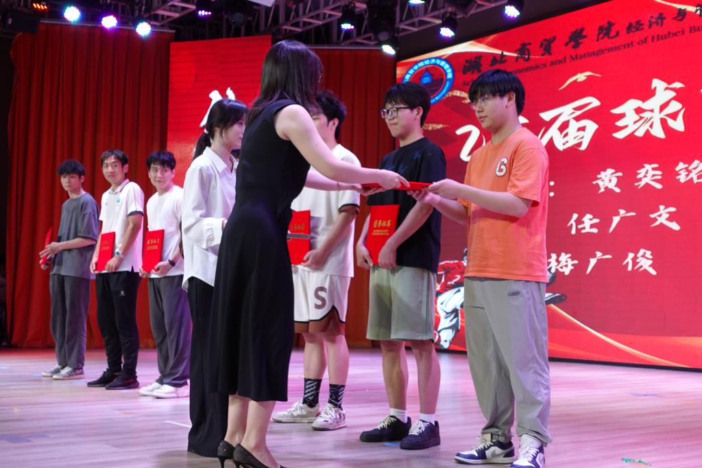 特别环节“球队退役仪式”成为晚会亮点。学院篮球队、足球队优秀队员代表登场,王珉为其颁发荣誉表彰。队长黄奕铭动情表示:“从赛场到职场,我们会永远铭记团队协作的力量!”