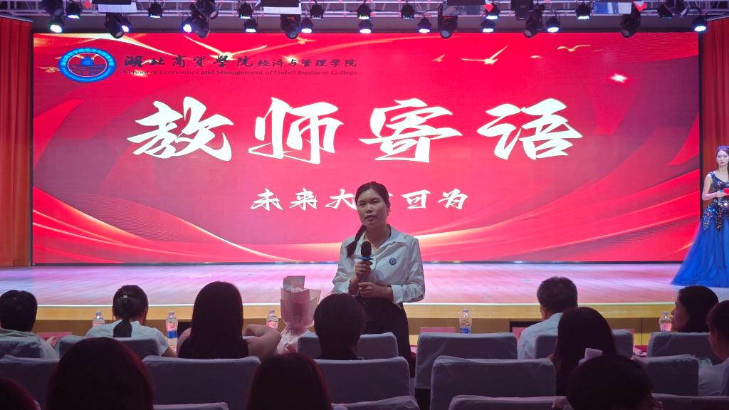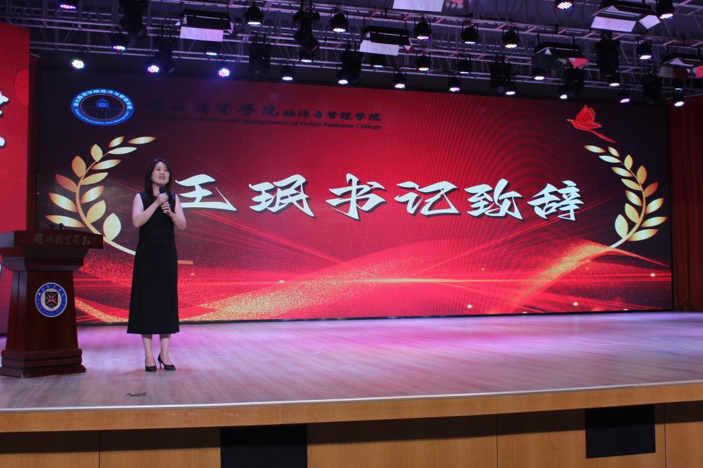 王珉在致辞中向全体毕业生表示祝贺。她回顾了学院近年来在团队建设、创新创业等领域取得的突破,并勉励同学们:“希望你们以‘经世律己’的情怀拥抱时代,以‘管人悟道’的智慧解决问题,在未来的赛道上跑出属于经管学子的精彩!”王书记的讲话饱含期许,赢得全场热烈掌声。