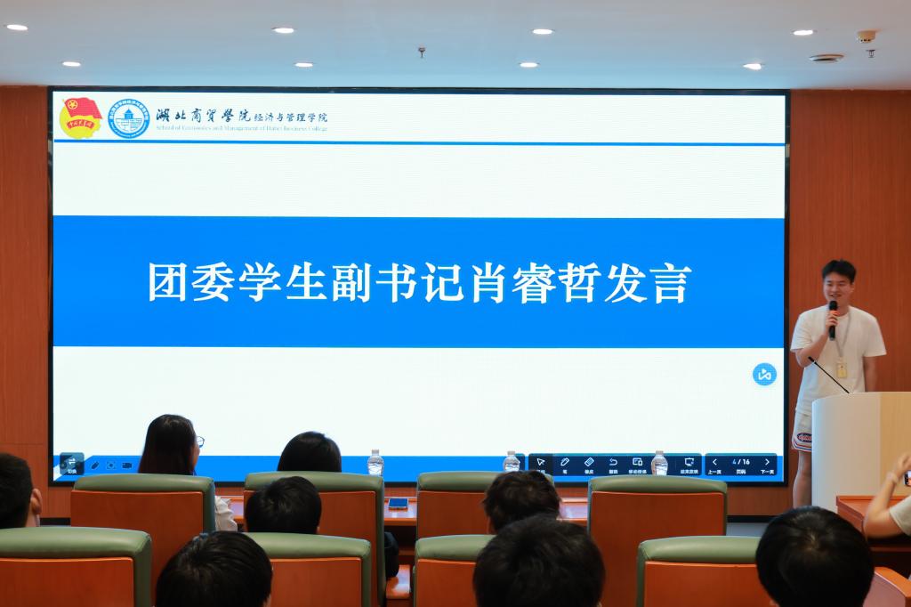 接着团委员工副书记肖睿哲代表发言,他以自身为例,讲述了自己的工作心得和成长收获。