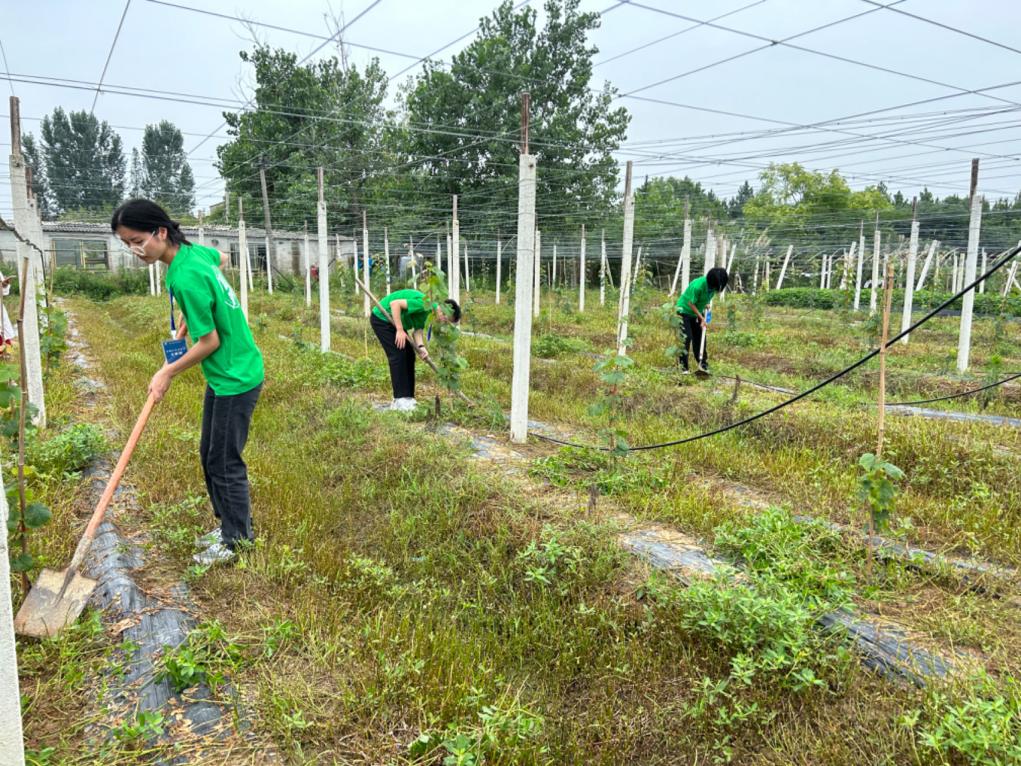 7月1日,实践团来到赤东童畈馨嘉源农场调研,队员们通过与农场主的交流了解到,2017年他白手起家,到如今,年近150万的收益,帮助近30名当地农民解决就业问题,他不仅让撂荒的土地重新利用,而且给当地农民带来了稳定的收益,实践团被他的爱“农”情怀深深触动。同日下午,在工作人员的帮助下,队员们拿起铁锹有模有样的在农场里锄草耕作。半天的体验,实践团体会到了农耕的艰辛,更明白了幸福是靠双手奋斗出来的。据了解,该农场采取果园—家禽—鱼塘—农家乐的生态循环共作方式将资源利用最大化。