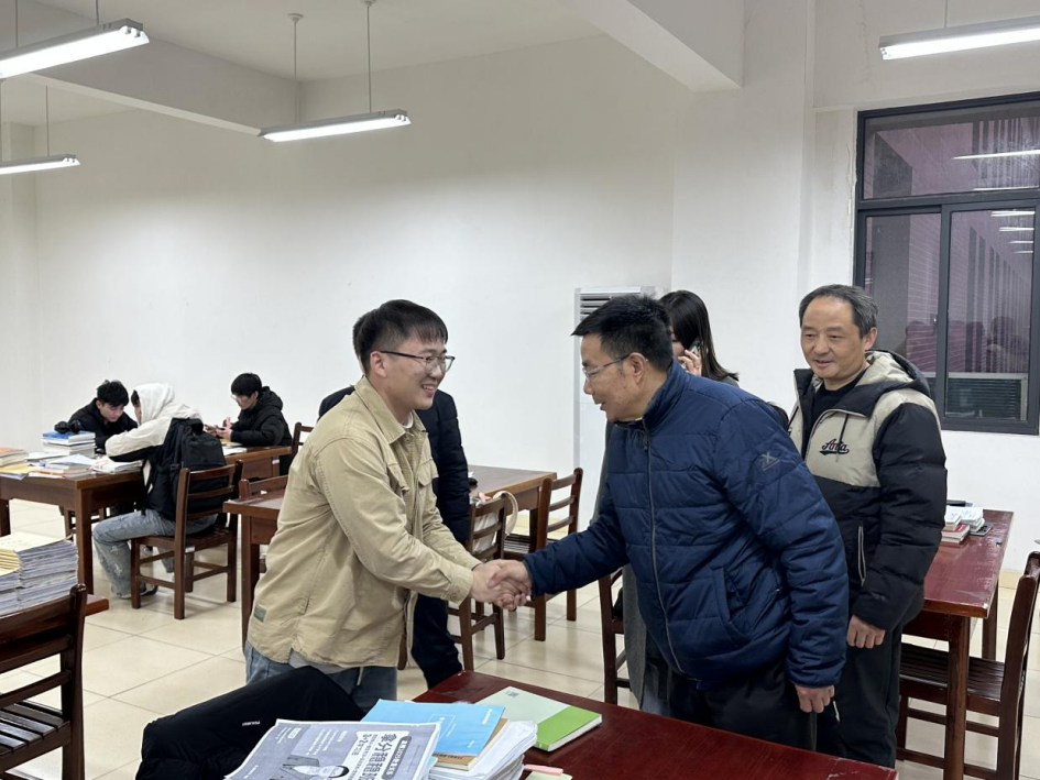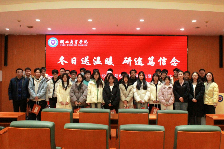 2025年研究生考试在即,为提振经管学子考研斗志,增强考研信心,12月18日,学院开展2025届考研员工慰问活动,学院经理严良、党总支书记王珉及部分教职工向考研学子传递诚挚祝愿并赠送“考研助力大礼包”,为辛勤备考的学子们加油鼓劲。