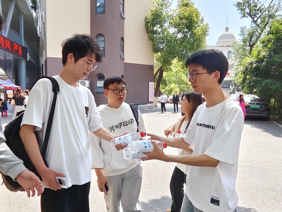 一瓶矿泉水传递温情关怀  一句句寄语提振考生士气