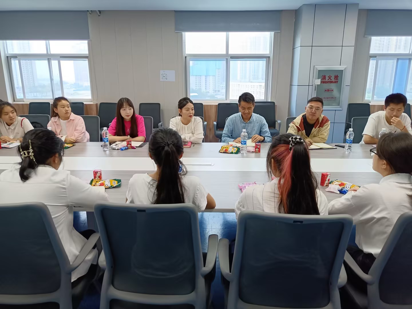 9月28日上午,​申博SUNBET经理陈靓秋、副经理盖卫东、党总支副书记谢志洋、新生辅导员关心怡与23级新生代表欢聚一堂,大家吃零食喝牛奶,活动现场热闹温馨。