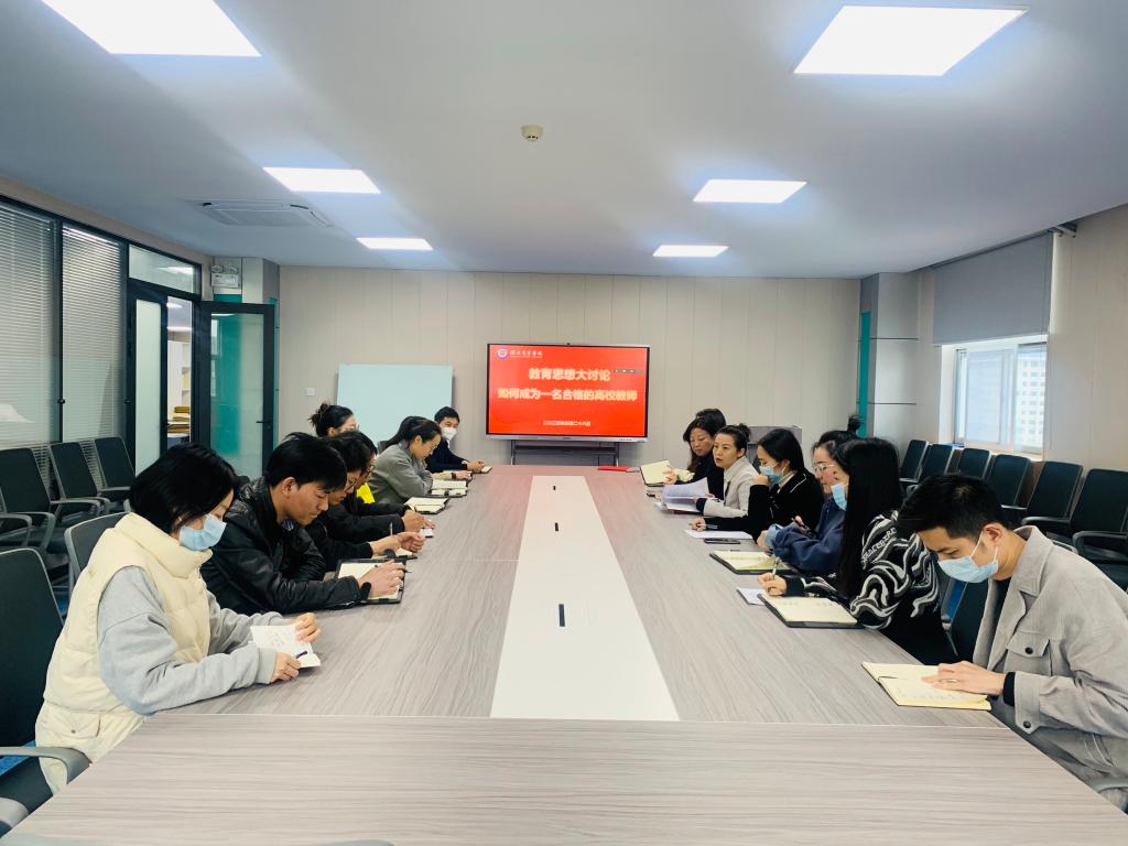 与会人员围绕如何成为一名合格的高校教师进行了深入讨论,白小宁、顾铭嫄等两位新老师还就如何加强与员工之间交流,如何掌控课堂教学纪律等提出疑问,陈靓秋一一解答并提出建议。老师们纷纷表态,作为新入职教师,大家一定会刻苦钻研业务,站稳站好“三尺讲台”,坚持教书和育人相统一,坚持言传和身教相统一,坚持潜心问道和关注社会相统一,坚持学术自由和学术规范相统一,努力使自己成为一名合格大学教师,为服务员工成长成才贡献力量。