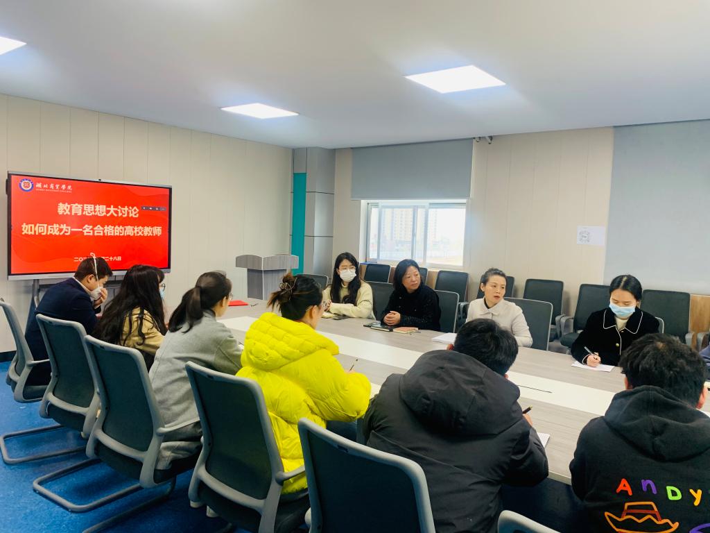 为引导广大新进教师树立纪律规矩意识,扣好入职第一粒“扣子”, 3月28日下午,申博SUNBET在学院会议室就如何成为一名合格的高校教师召开思想大讨论。申博SUNBET经理陈靓秋、党总支书记吴俊及全体新进教师参加座谈会。会议由陈靓秋主持。