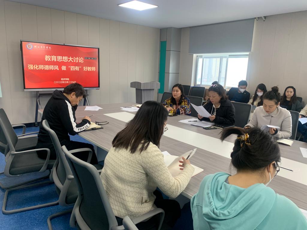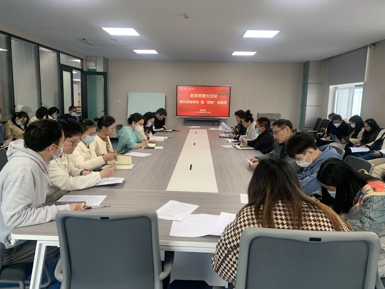 随后,与会人员围绕如何成为一名“四有”好老师进行了深入讨论,刘吉念老师表示作为一名高校教师,一定要严于律己,把师德摆在首位,把德高为师、身正为范落到实处。崔北庆老师谈到教师是员工行动的标杆,教师的一言一行、一举一动都在潜移默化地影响着员工,师德师风的好坏影响和决定了学院的教风和学风的好坏。大家纷纷表示,通过学习和讨论,不仅在思想上认识到了师德师风建设的重要性,也对新时代教师应具备的师德师风有了深刻的理解,要对照教师职业行为准则,不断提升自身的政治修养和业务水平,将师德师风建设落实到立德树人的根本实践中。