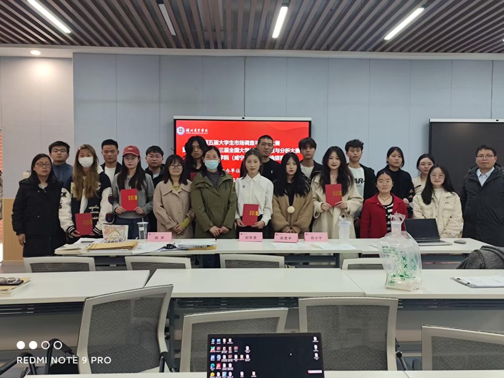 本次比赛共有5支队伍进入答辩展示环节。大赛历时2个小时,最终经过专家评审,获得一等奖作品分别为雷师于小组的《湖北省年轻消费者对现代食品速食类偏爱度调查-以咸宁市为例》、曹瑾怡小组的《后疫情时代老员工心理变化及行为趋势的调查研究》。