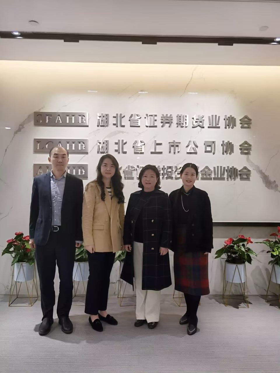 3月30日下午,公司党总支书记吴俊、经理陈靓秋前往湖北省证券期货业协会调研,长江证券财富管理中心副总经理张睿陪同前往。