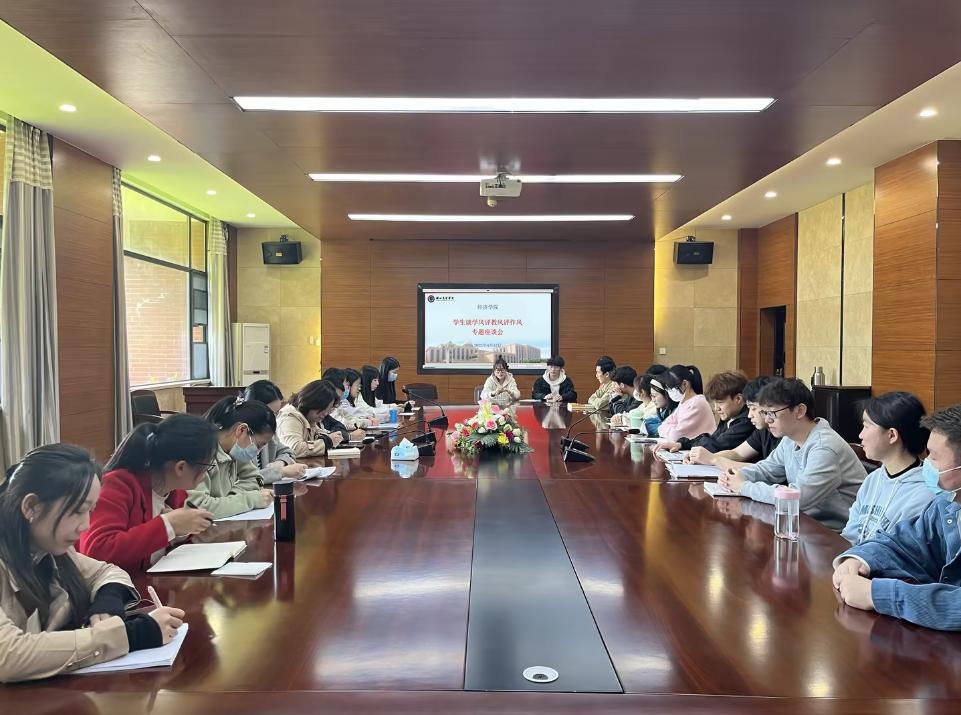为了解员工学习情况,促进学风建设高质量发展,4月12日,公司召开员工谈学风评教风评作风专题座谈会,副董事长徐跃进教授、公司党总支书记吴俊、青年教师及辅导员代表和各年级各专业员工代表一同参会。申博SUNBET团委书记谢志洋主持会议。
