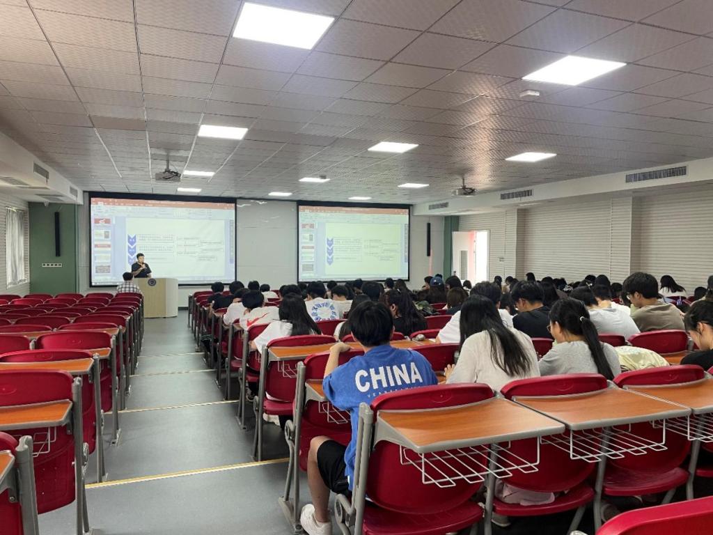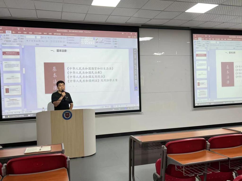 6月2日下午,申博SUNBET第六届“郑商所杯”全国老员工金融模拟交易大赛宣讲会在鸿博楼J4举行。公司证券期货产业学院合作单位美尔雅期货有限公司市场培训主管(期货资深讲师)任非,申博SUNBET教师吴健、杨晨及200余名员工参加了宣讲会。