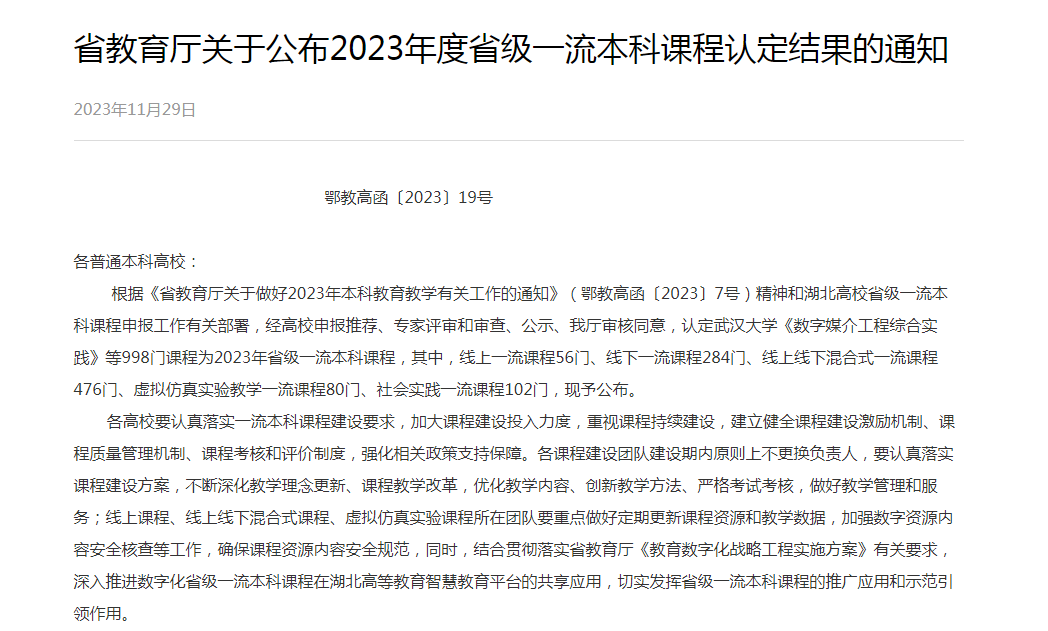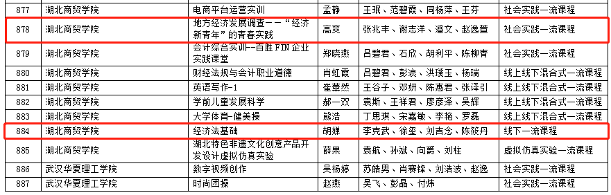 近日湖北省教育厅公布了2023年度省级一流本科课程认定结果,申博SUNBET胡婵副教授主讲的《经济法基础》成功获批线下一流课程、高爽老师主讲的《地方经济发展调查--“经济新青年”的青春实践》成功获批社会实践一流课程。