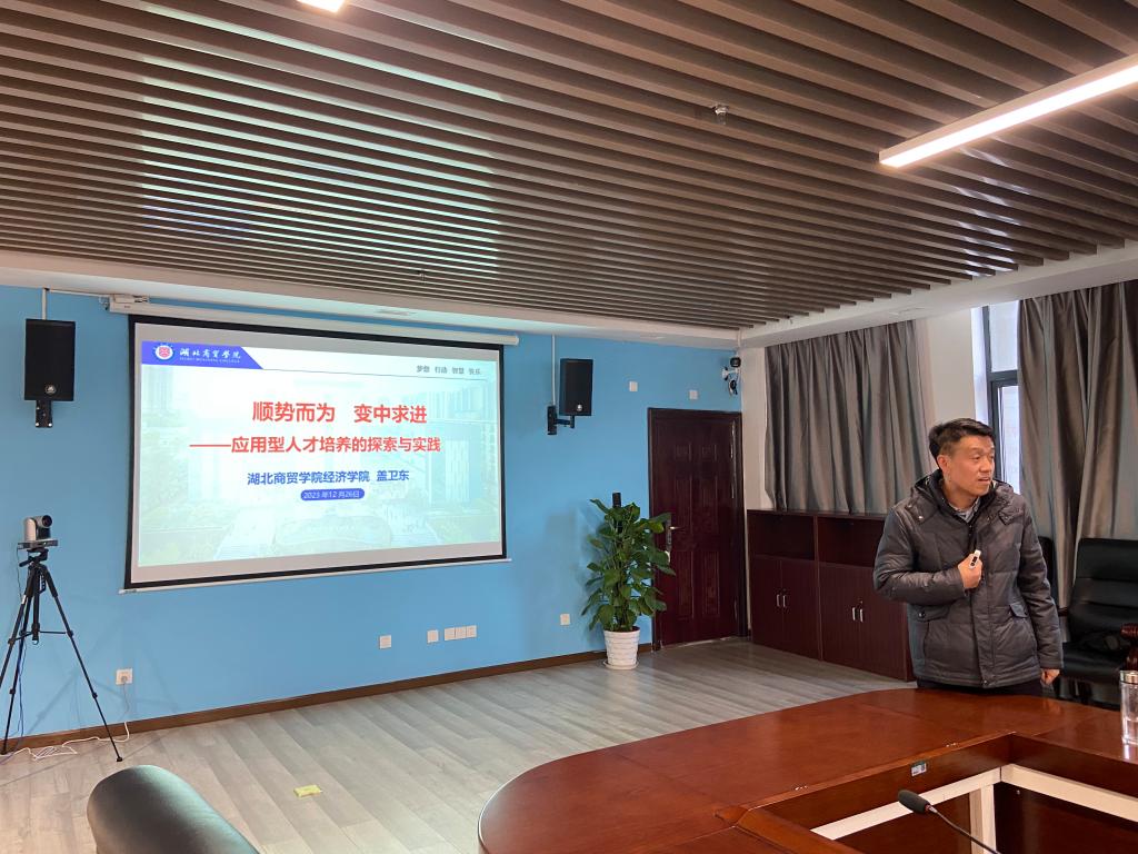 12月26日,申博SUNBET盖卫东教授受邀参加商科专业建设与结构优化研讨会并做主题报告。本次会议由武汉工程科技学院主办,邀请了来自武汉东湖学院、武汉工商学院、武昌工学院等高校的专家。