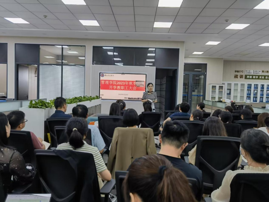 副经理徐刚就近期教育部论文抽检工作和实验教学总结工作进行说明和督促,并就咸宁校区开学初教学服务指南进行解读,特别强调新老师需对咸宁校区以及教室中希沃一体机充分熟悉,为教学做充分的准备。