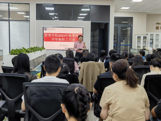会议伊始,党总支书记王珉对老师们积极参加开学前的系列培训工作表示肯定,希望老师们坚持“己所不欲勿施于人”的原则,做好员工的榜样;她还对2023届员工的层次和人数进行通报,并就近期迎新工作进行部署。