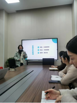 首先,由上新课的陈文怡老师对本学期的课程《大数据营销》进行说课和展示,她介绍该门课程的教学设计以及学习方法,主要从数据产业的发展、数据技术产生的背景等知识点展开说课。