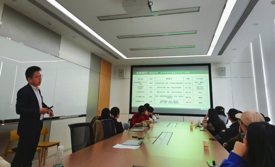 正大食品人事部胡寅飞经理为同学们介绍正大集团的校招活动,胡经理从招聘流程,入职培训、成长晋升体系及薪酬福利待遇等各个方面都做详细说明,并和同学们进行互动和答疑,现场氛围十分热烈。