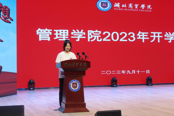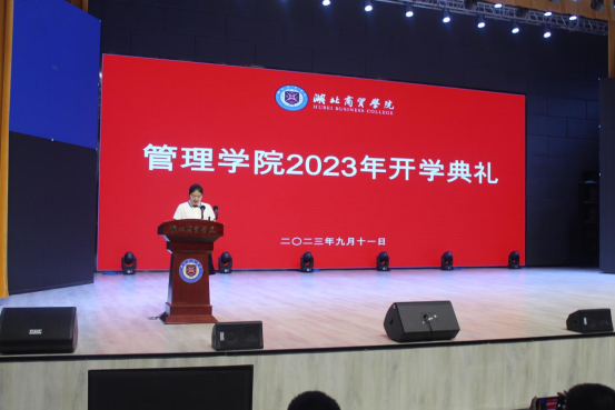 在一阵热烈的掌声中,本次新生开学典礼也缓缓拉下帷幕,新的湖商人也将开始新的湖商生活,希望他们在书山上辛勤地跋涉,在学海中快乐的行舟,共创更好的管院!