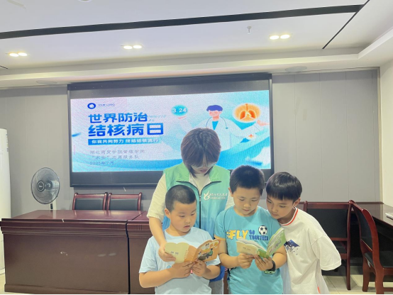 此次宣讲以“你我共同努力,终止结核流行”为主题的专题讲座,旨在进一步提高未成年人对结核病的认识,普及结核病防控知识,做好结核病防控工作。为加强暑托班学员对“防治结核”相关内容的学习兴趣及效果,开展了一系列“防治结核”特色游戏活动。随后,志愿者们向暑托班学员详细介绍了结核病的症状,以及结核病的危害、传播途径、防控措施、治疗政策等内容。并在提问环节,志愿者逐一对暑托班学员的提问做出解答。讲座结束后,暑托班学员还观看了“防治结核”的动画视频,并表示回家以后将所学所想分享给家人,这也更好的体现了讲座的意义。