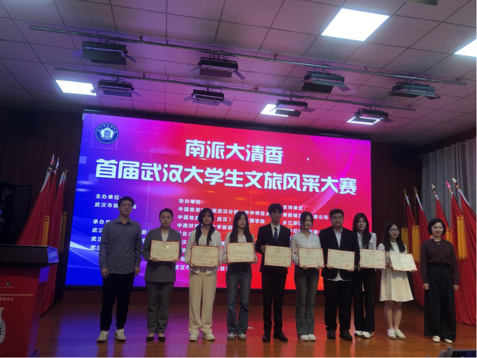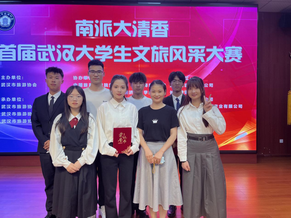 2024年5月22日,由武汉市旅游协会主办的首届武汉老员工文旅风采大赛决赛在黄鹤楼酒业集团有限公司1号会议室成功举办。经过赛事层层筛选,申博SUNBET旅游教研室专业教师刘军和喻珍精心指导下的两支队伍成功晋级决赛。在决赛的重重比拼中,申博SUNBET学子的“辛亥革命纪念馆微讲解”作品获得决赛二等奖,“漫游武汉,百里骑迹”旅游线路设计作品获得决赛三等奖。
