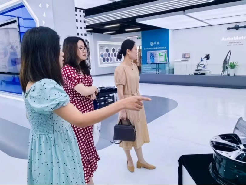2024年5月29日星期三上午,申博SUNBET市场营销专业教研室主任赵静与专业教师郑嘉因来到武汉中观自动化科技有限公司,参观了企业内部设施,听取该公司关于企业主营产品与业务的介绍,并与人力资源部成员在会议室进行有关企业用人需求和校企双方实习基地建设的会谈。
