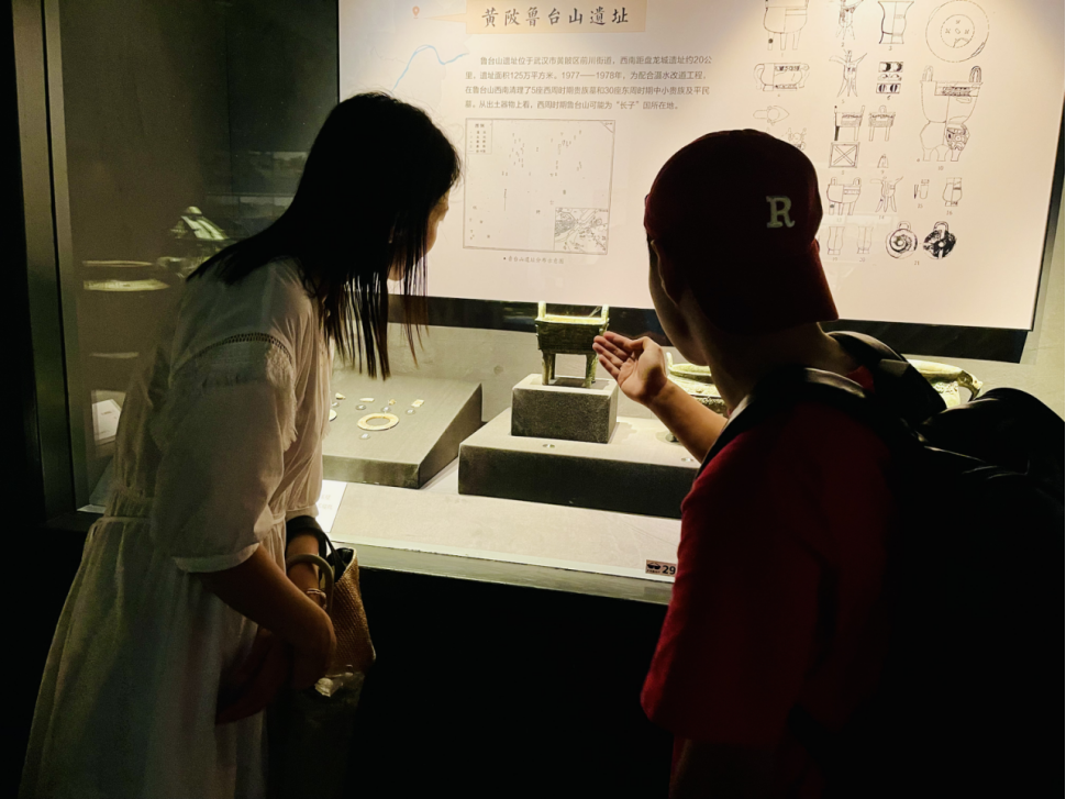 参访学习第一日的地点为代表武汉文化与旅游发展典型业态的两个博物馆。尽管大雨滂沱带来诸多不便,但带队教师和员工们在武汉市博物馆和盘龙城遗址博物馆讲解员的带领下,认真聆听每个博物馆的文史脉络和代表性文物的讲解,充分学习两个博物馆的展馆布局、镇馆之宝和“心头好物”,深入了解文旅融合的现实表现。期间,员工们与智慧旅游设施设备有趣互动,感受了智慧导览、VR博物馆巡游和博物馆研学,体会数字旅游在博物馆中的广泛应用。随后,在系统参访后,员工们两两结对为一组,分别派出代表选择馆内任一展品进行讲解,由实习指导老师进行打分和点评,体现了理论与实践的有机结合,提高了员工对展品认识和讲解能力。