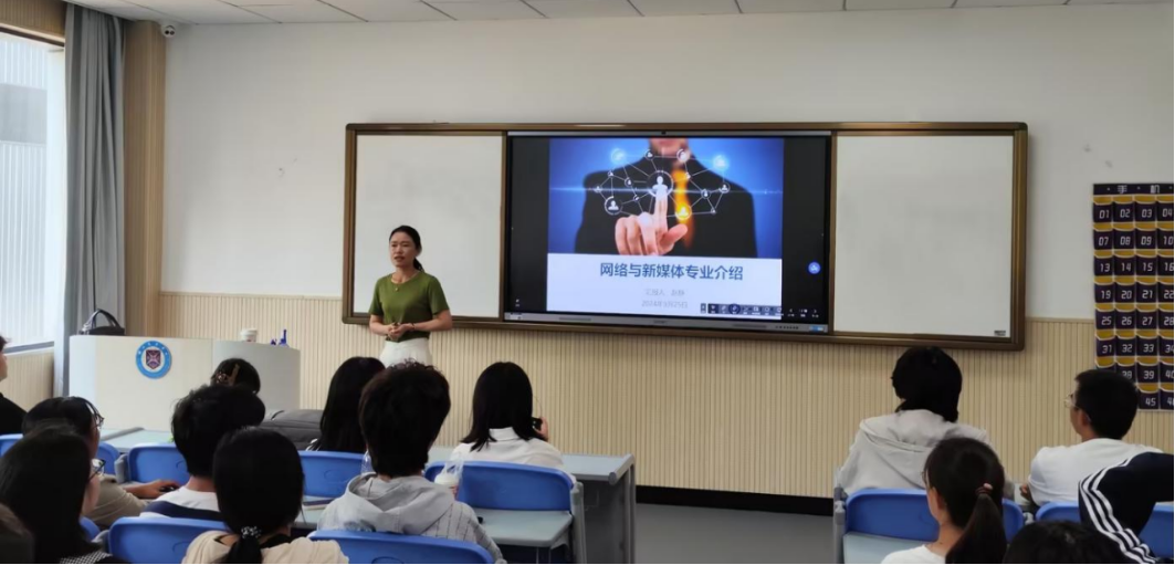 探索媒体融合路,传播梦想新媒体。新媒体与营销教研室主任赵静为同学们详细介绍网络与新媒体专业的特点、课程设置、就业前景等方面的内容。她指出,网络与新媒体专业是一个充满挑战与机遇的专业,在这里,同学们将学习到新媒体的运营与管理、内容创作、数据分析等实用技能。