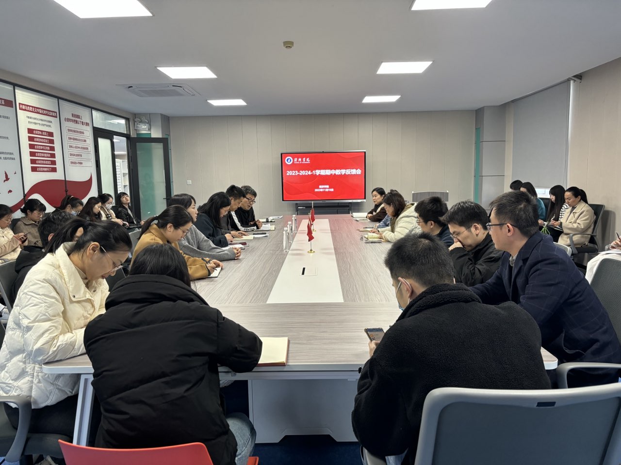 经理陈靓秋首先肯定了前期老师们在学院各项工作中的表现,同时对本次期中教学检查中发现的几项突出问题,做了改进要求和具体部署,她要求教师在课堂教学上要下功夫,对员工的学习进度要及时跟进及帮扶,强化过程管理,充分发挥课堂教学主渠道作用,持续提升公司产品质量。