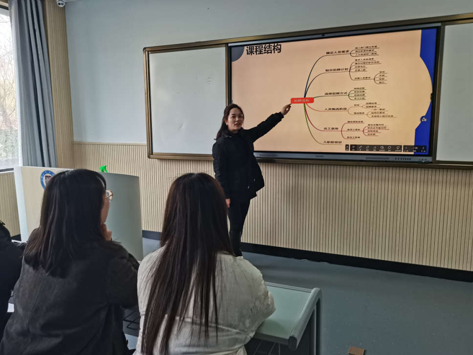 在寒假期间,教研室组织老师根据最新的规范要求完善修订了教案、大纲、教学计划等教学文件,将最新的理论前沿和行业实践融入到自己的教学文件中,这是本次磨课顺利开展的基础。雷燕首先以本学期承担的《劳动关系管理》课程第一章为例进行了展示,她结合自己丰富的行业经验在课程开始即让员工对于劳动关系的内涵和重要性建立准确的认识,为接下来的教学铺平了道路。