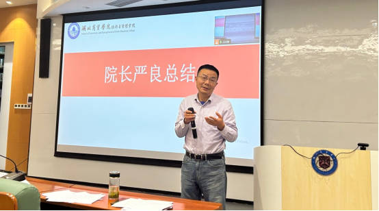 最后,经理严良为本次活动做总结点评。他表示,此次活动非常有意义。参赛的青年教师们准备充分,无论是PPT制作,亦或是教学环节设计,都处处体现出教师们耐心、精心、细心的打磨、推敲、凝练的备课过程。青年教师们通过参加磨课、竞赛等活动,教学技能及教学水平得到新的突破。学院将继续秉承“博学善导,厚生乐教”的教育理念,为教师提供更多成长平台和发展机会,助力教学质量持续提升,为学院应用型人才培养贡献力量。