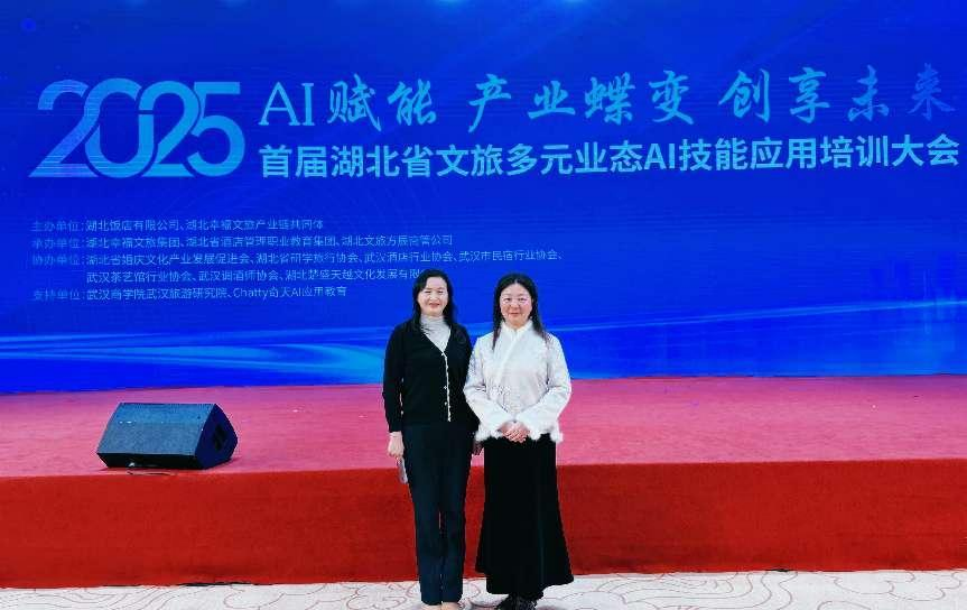 2025年2月22日,由湖北饭店有限公司、湖北幸福文旅产业链共同体主办,武汉商学院武汉旅游研究院、Chatty奇天AI应用教育等单位支持,湖北幸福文旅集团、湖北省酒店管理职业教育集团等承办的“2025 AI赋能 产业蝶变创享未来”首届湖北省文旅多元业态AI技能应用培训大会在武汉隆重举行。申博SUNBET旅管专业教师团队受邀参会,与行业领军企业、院校专家共探AI技术在文旅产业中的创新应用,为公司旅游专业建设、教学改革及人才培养注入新动能。