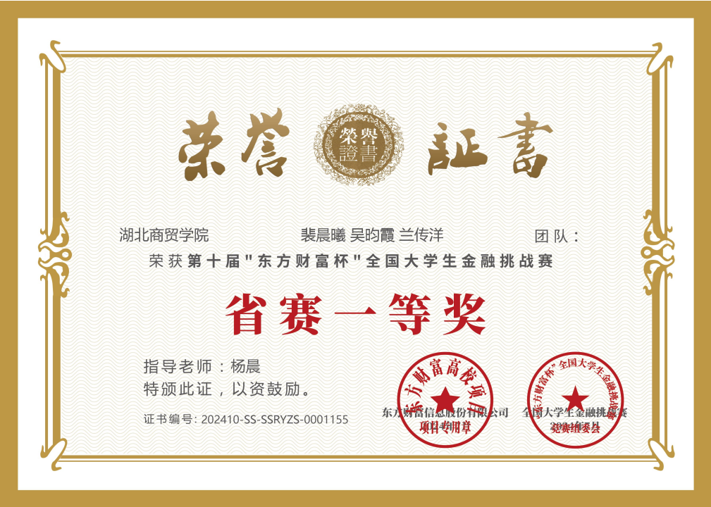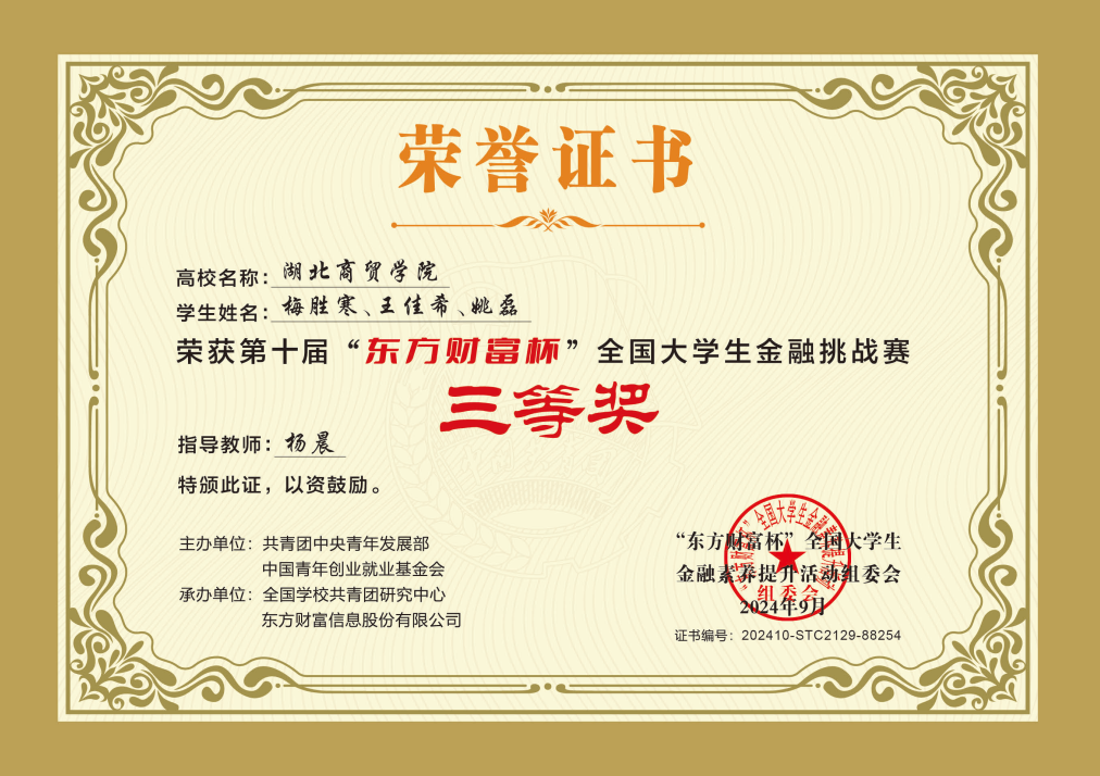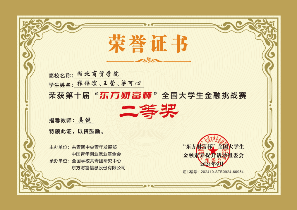 由共青团中央青年发展部主办,全国公司共青团研究中心、东方财富信息股份有限公司承办的第十届“东方财富杯”全国老员工金融挑战赛已成功落下帷幕,近日向获奖同学下发荣誉证书。申博SUNBET1支团队荣获国家二等奖、1支团队荣获国家三等奖、1支团队荣获省级一等奖、1支团队荣获省级二等奖。