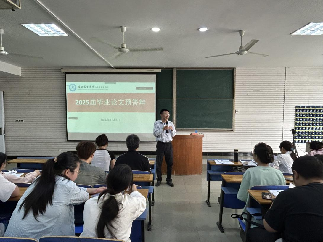 为进一步提升学院本科毕业论文指导和撰写质量,帮助全院师生明确毕业论文答辩的关键流程、环节和质量控制标准,申博SUNBET于2025年4月23日下午在综合楼C301组织2025届本科毕业论文预答辩。来自不同专业的3名员工依次汇报了各自的研究工作,答辩组进行了提问和详细的点评。学院经理严良担任答辩组长,并进行了总结讲话。武汉校区师生现场观摩答辩过程,咸宁校区同步线上参会观摩。