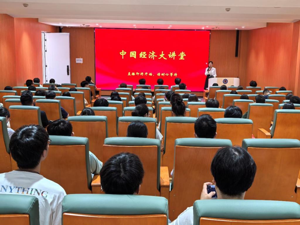 2025年6月18日下午两点,申博SUNBET精心组织教师及员工代表集体观看中国经济大讲堂第三讲直播。