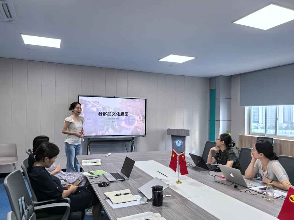 刘巧老师就《奢侈品文化版图》这门公选课的改版进行说课。她讲到此次改版从大纲结构、课程思政等方面进行了优化,尤其是增加了对我国古代瓷器、丝绸等的讲授,从历史角度为员工提供全球视野,增强文化自信。