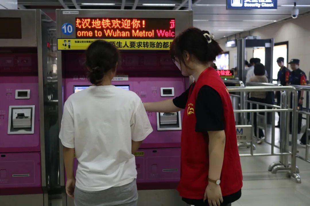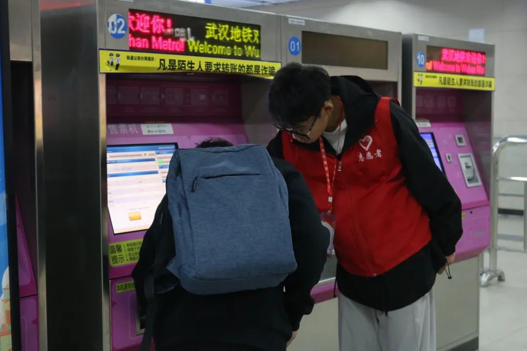 服务过程中,遇到乘客在购买地铁票时不了解售票机工作流程、不清楚如何坐车等问题,志愿者们给予耐心指导和解答。