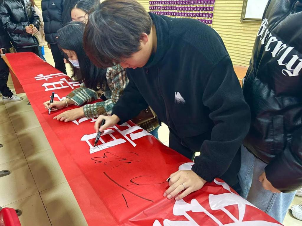 随后,同学们在宣传横幅上签名。