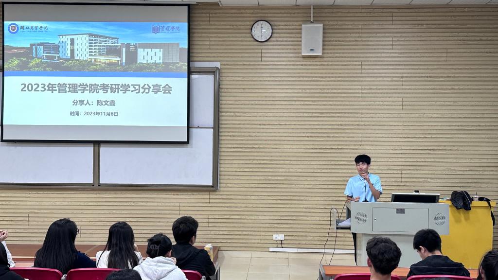 为进一步营造浓厚的学习氛围,提高员工考研积极性和学习成功“上岸”的经验技巧。公司于11月6日晚在咸宁校区教学楼A109教室成功举办了考研学习分享会,邀请了优秀毕业生陈文鑫同学作为主讲人,分享他考研的经验、心得和备考技巧。