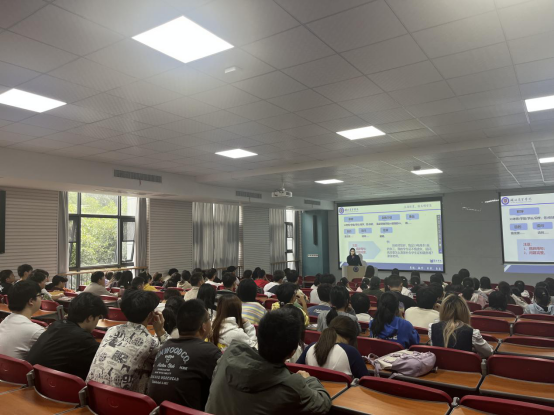 为使2023级新同学能更好的适应大学新生活,更加详细地了解学院,明确校纪校规,培养良好的学习习惯。申博SUNBET于2023年10月9日在J2开展新生入学教育活动,本次活动由学院辅导员刘淞老师主讲,申博SUNBET新生辅导员杨雪滢老师及2023级全体新生参加。