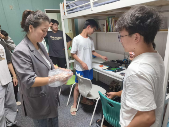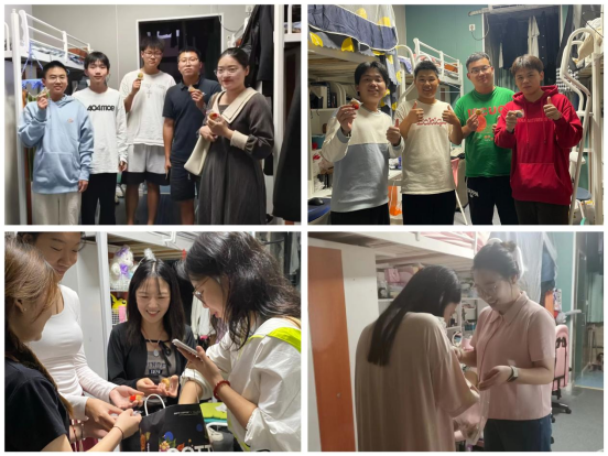王珉书记和辅导们敲开学子的门扉,收到月饼的同学们十分欣喜。23数管本1班裴晨曦说到,“看到王珉书记、刘淞老师和杨雪滢老师拿着月饼送到我们的手上,我们很意外,同时也惊喜于学院有这样充满人文关怀的活动。”