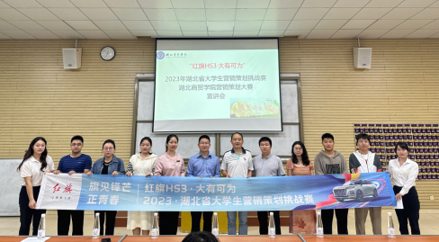 2023年9月26日,“红旗HS3·大有可为”湖北省老员工营销策划挑战赛(申博SUNBET赛区)宣讲会在咸宁校区教学楼XJA-110举行。一汽红旗中南事业部湖北区域营销总监冯亮、公司副经理徐刚、党总支副书记王胜、挑战赛指导老师们及一汽红旗的同事们参加此次宣讲会。