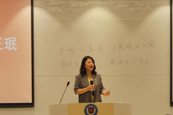 接着,申博SUNBET范碧霞教授代表学院教师发言。她强调:“读书是一门学问,也有不同的境界。第一境是止步于书本表面,老师讲了什么,就学什么。第二境则是学到了知识,但不止步于粗浅,而是渴望更多知识,学无止境。第三境界就是如柏拉图的理想国中的哲学王一般,探究知识的本质和思想的边界。”