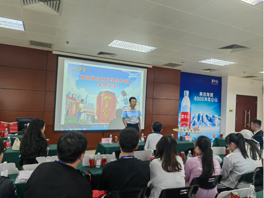 活动伊始,加多宝集团华中事业部人力主任黄淑英代表加多宝集团对同学们的到来表示热烈欢迎,并介绍了本次营销实习的活动流程。之后,加多宝集团华中事业部人力资源经理杨苑从公司发展史、人才培养、社会责任三方面进行讲述,让同学们更好地走进加多宝;加多宝华中事业部湖北大区策划负责人孟华从产品介绍、中国饮料第一罐、品牌转换及二次创业四个方面讲述了加多宝品牌故事;昆仑山湖北大区策划负责人严祥讲述了走进昆仑山,以做实验的方式为同学们普及水知识。通过加多宝企业方代表的讲述,同学们对加多宝品牌以及产品有了更深的认识,为之后的系列营销活动做铺垫。
