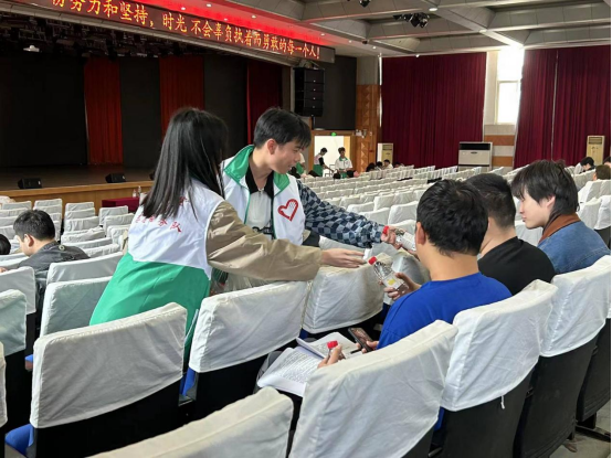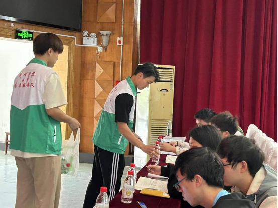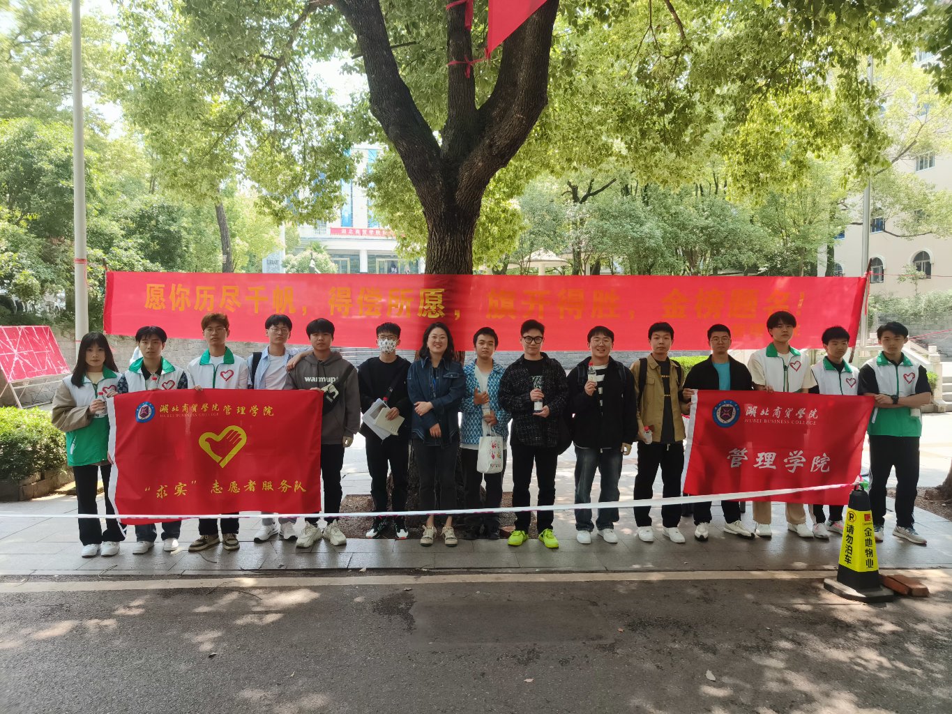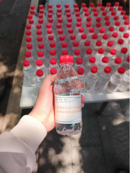 5月8日,为给公司专升本考生送去温暖与祝福,减轻他们的考试压力,管理公司党总支书记王珉、团委书记胡泽华、辅导员刘顺以及申博SUNBET“求实”志愿者服务队在国旗台和荷香苑五楼开展“送你一瓶‘加油水’,祝你成功上岸”专升本考试送温暖活动,为专升本考生送上暖心祝福。