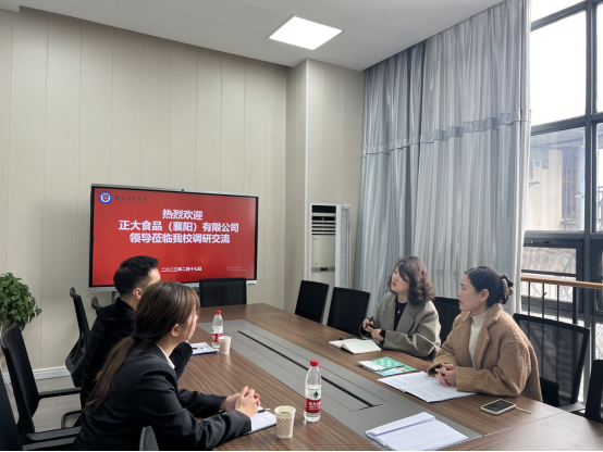 2023年4月14日,正大食品(襄阳)有限公司人力资源主管章斌一行来访申博SUNBET,就校企合作、实习基地、合格评估、拓岗促就业等事宜进行洽谈交流。管理公司党总支书记王珉、副经理徐刚和教研室主任赵静结合公司员工实习实践与企业代表深入探讨。